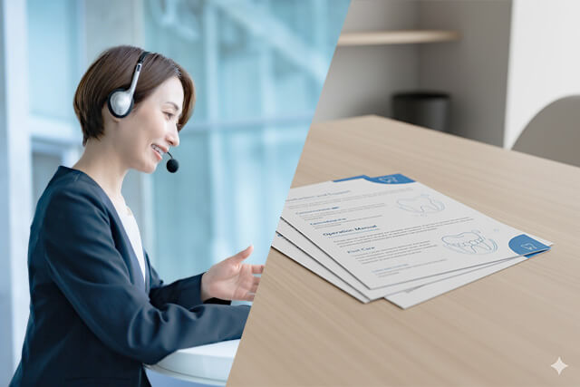 設置方法、施術マニュアル、同意書などをパッケージに含んでおります。未経験の方でも安心して導入いただけます。また組立設置、導入研修制度もご準備しております。