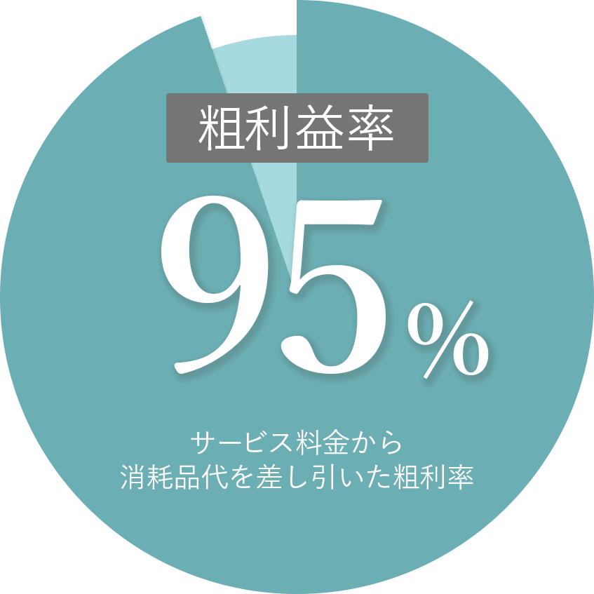 圧倒的低価格でスタートできるパッケージです。その上、マシン永久保証と高機能ジェル、医療提携が他社にはない魅力となっています。