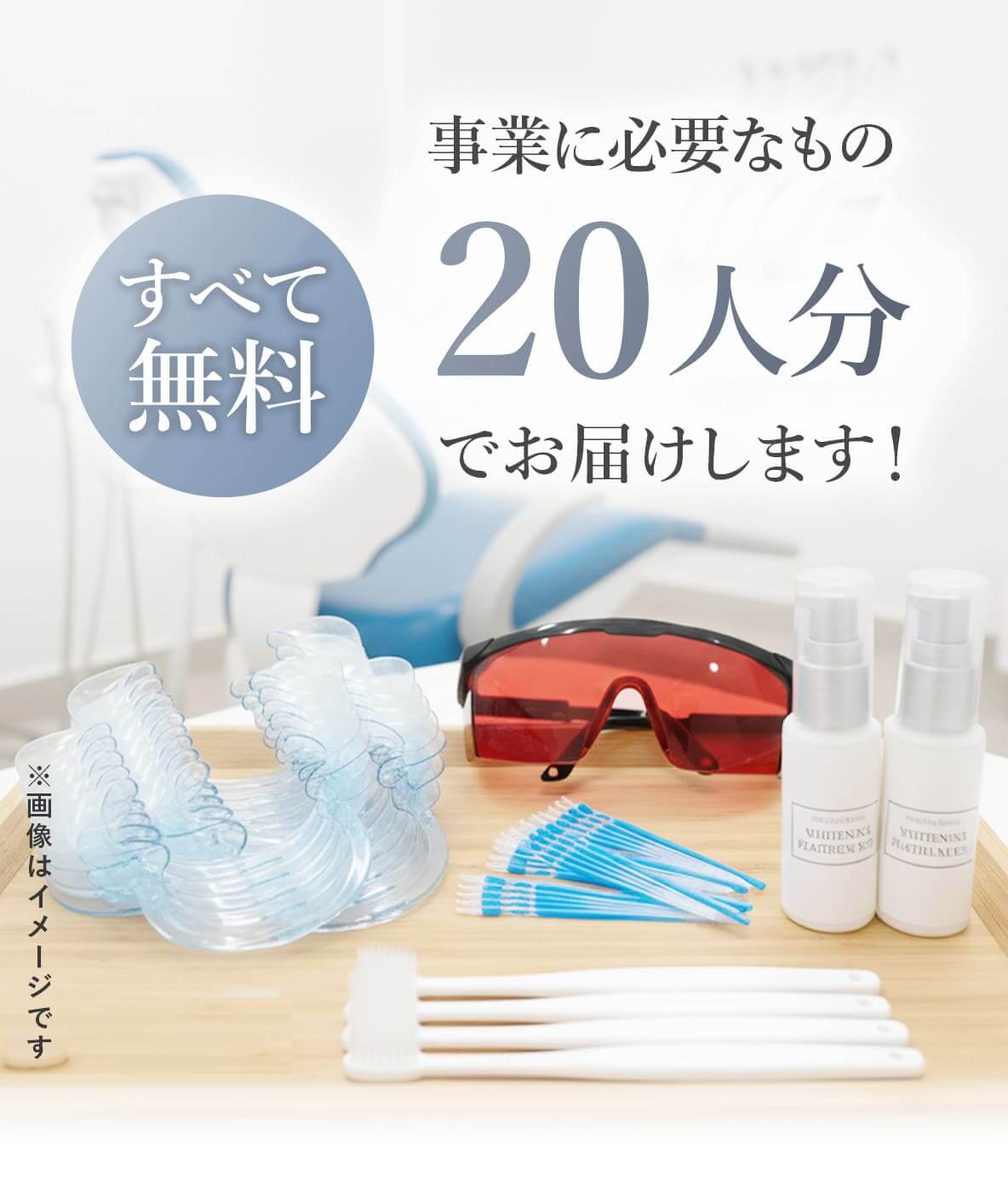 更に20名様分のジェル、マウスオープナーまで、開業に必要なものを全て無料で提供。